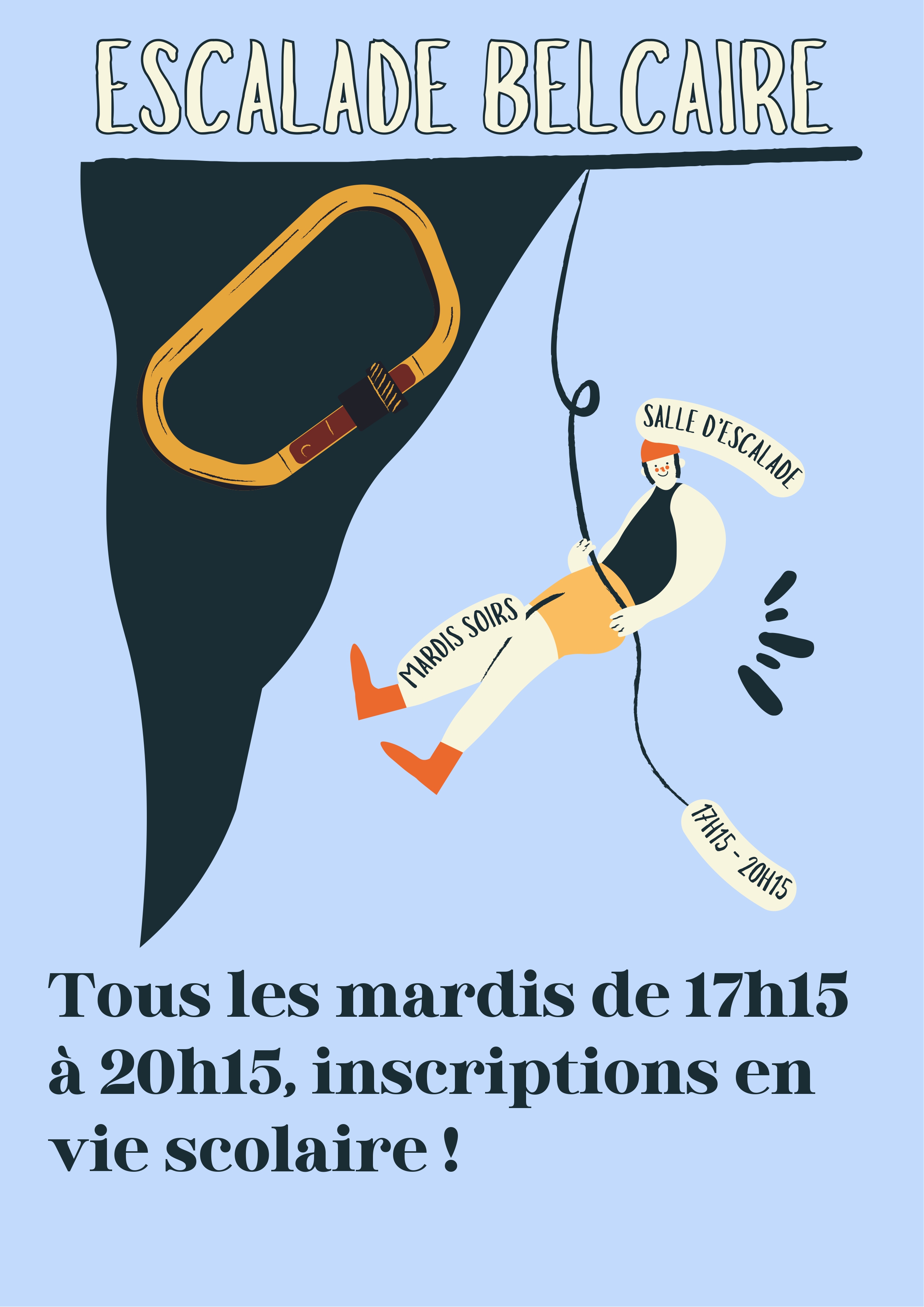 Activité escalade à Belcaire les mardis soirs. Inscriptions auprès de la vie scolaire. Pour plus de renseignements, voir M. CUNCHON.